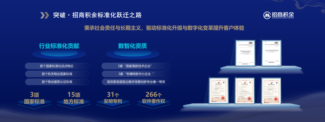 多年来,招商积余始终坚持社会责任与长期发展理念,曾承担全国物业服务标准化技术委员会(SAC/TC560)以及广东省物业服务标准化技术委员会(GD/TC 56)的秘书处工作,在标准化建设与科技创新方面取得丰硕成果。