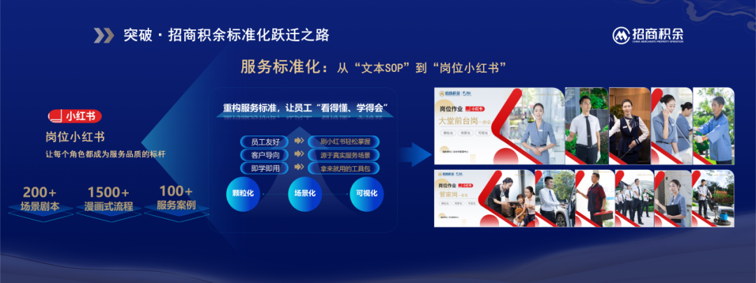招商积余在服务标准化方面的创新实践,公司推出的《岗位小红书》系列手册,以图文漫画形式呈现岗位流程和服务话术,极大提升了员工的理解力和执行力;同时,结合典型场景剧本演练,进一步增强基层员工的服务应变能力。